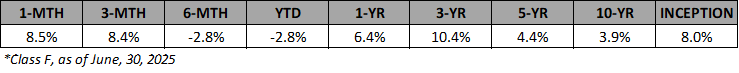 Please Note: Fund performance data is net of fees, however, it is not indicative of future performance, and should not be relied upon when evaluating the merits of a potential investment in the Fund. Performance data relating to market indices such as the S&P/TSX total return, the S&P 500 total return, the Russell 2000, the S&P Toronto Small Cap index, and the Merrill Lynch high yield index have been provided for information purposes only. A comparison of Fund performance to said indices is of limited use due to factors such as portfolio concentration and the potential use of leverage in the Fund.